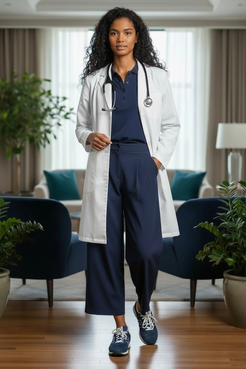 Your work is about positive change — for your patients, your community and the planet. These women's scrub trousers are a symbol of that change, made from recycled materials that reflect your commitment to a healthier tomorrow. Soft, breathable and built to move, they keep you ready for long days on your feet. The cropped, wide-leg cut gives them an effortlessly stylish look.